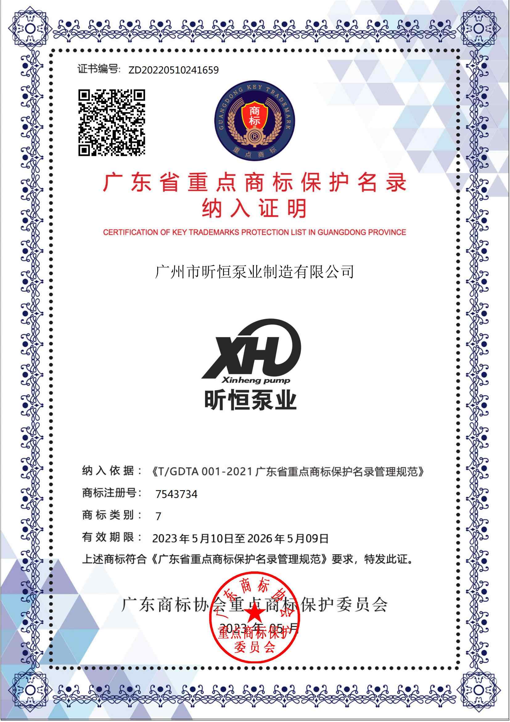 2023-06-26 查看更多(duō)喜報 | 昕恒泵業品牌成功入選廣東省重點商(shāng)标保護名(míng)錄